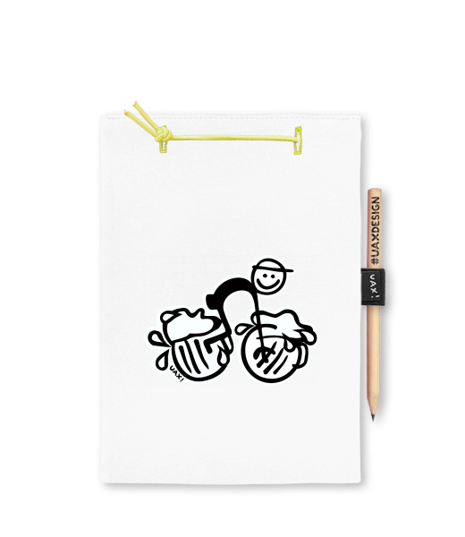 PAD REFILL A4 with removable papers. Possibility of selecting a print on the front of the PAD REFILL A4. At the top, downloaded with a yellow rubber band. 60 sheets with perforation for easier tearing. Yellow rubber at the bottom to secure the packaging. With the block you get a pencil #UAXDESIGN
