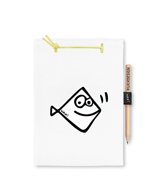 PAD REFILL A4 with removable papers. Possibility of selecting a print on the front of the PAD REFILL A4. At the top, downloaded with a yellow rubber band. 60 sheets with perforation for easier tearing. Yellow rubber at the bottom to secure the packaging. With the block you get a pencil #UAXDESIGN