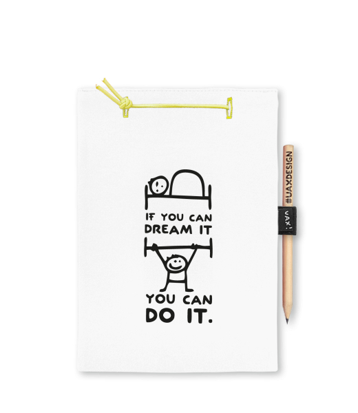 PAD REFILL A4 with removable papers. Possibility of selecting a print on the front of the PAD REFILL A4. At the top, downloaded with a yellow rubber band. 60 sheets with perforation for easier tearing. Yellow rubber at the bottom to secure the packaging. With the block you get a pencil #UAXDESIGN
