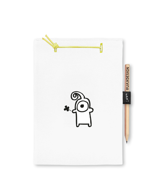 PAD REFILL A4 with removable papers. Possibility of selecting a print on the front of the PAD REFILL A4. At the top, downloaded with a yellow rubber band. 60 sheets with perforation for easier tearing. Yellow rubber at the bottom to secure the packaging. With the block you get a pencil #UAXDESIGN
