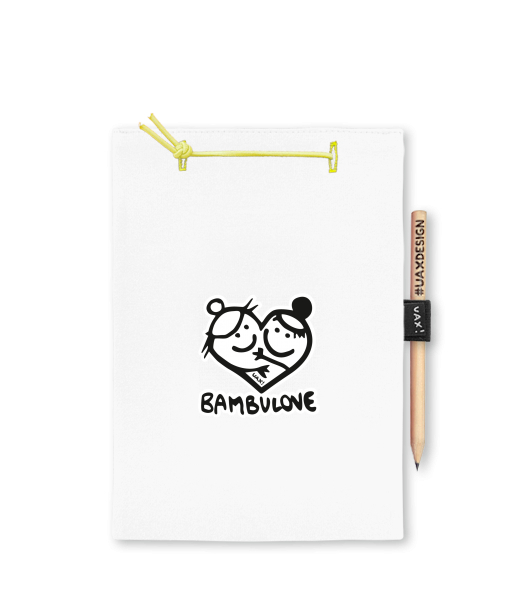 PAD REFILL A5 with removable papers. Possibility of selecting a print on the front of the PAD REFILL A5. At the top, downloaded with a yellow rubber band. 60 sheets with perforation for easier tearing. Yellow rubber at the bottom to secure the packaging. With the block you get a pencil #UAXDESIGN