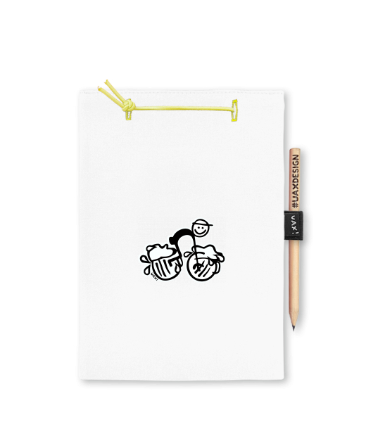 PAD REFILL A5 with removable papers. Possibility of selecting a print on the front of the PAD REFILL A5. At the top, downloaded with a yellow rubber band. 60 sheets with perforation for easier tearing. Yellow rubber at the bottom to secure the packaging. With the block you get a pencil #UAXDESIGN
