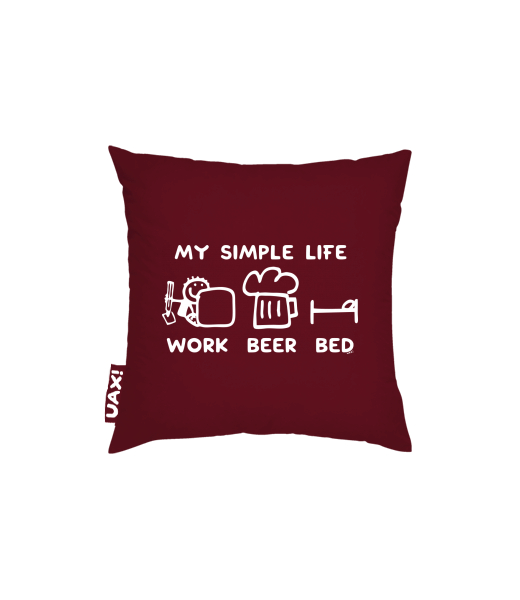 Pillow cover 50x50 with design 1211 MY SIMPLE LIFE WORK BEER BED in color DARK RED