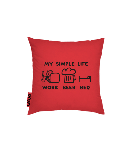 Pillow cover 50x50 with design 1211 MY SIMPLE LIFE WORK BEER BED in color RED