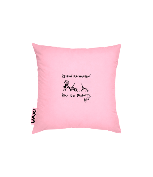 Pillow cover 50x50 with design 1303 ČESTNÉ PROHLÁŠENÍ IDU DO ROBOTY in color BABY PINK