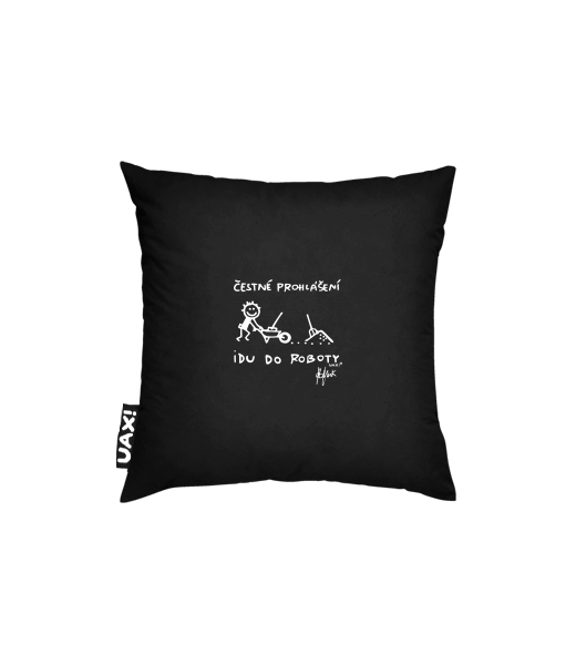 Pillow cover 50x50 with design 1303 ČESTNÉ PROHLÁŠENÍ IDU DO ROBOTY in color BLACK