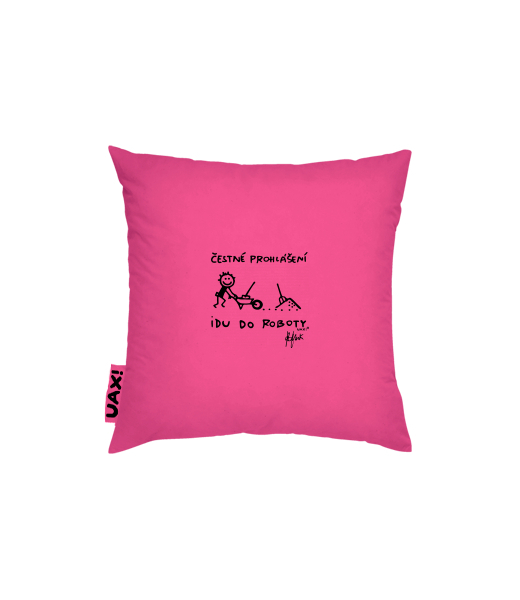Pillow cover 50x50 with design 1303 ČESTNÉ PROHLÁŠENÍ IDU DO ROBOTY in color INDIAN LILA