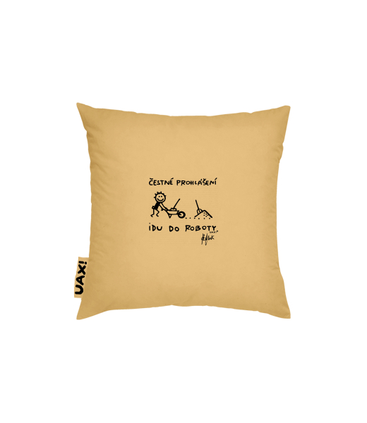 Pillow cover 50x50 with design 1303 ČESTNÉ PROHLÁŠENÍ IDU DO ROBOTY in color MUSTARD