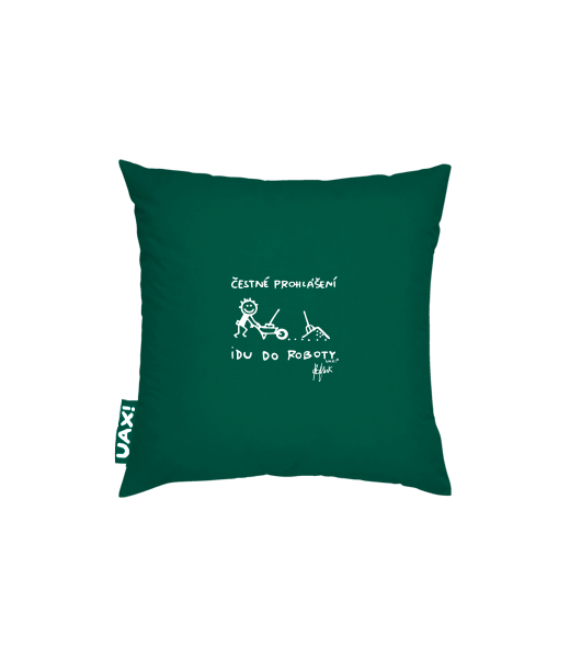 Pillow cover 50x50 with design 1303 ČESTNÉ PROHLÁŠENÍ IDU DO ROBOTY in color UNIVERSITY GREEN