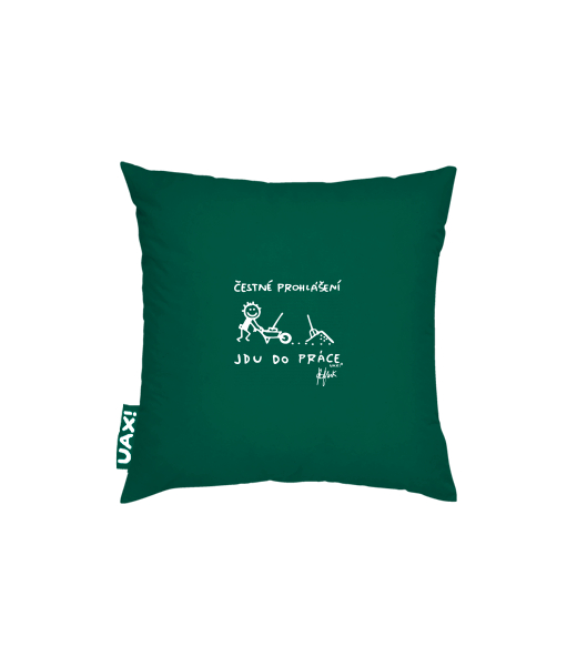 Pillow cover 50x50 with design 1304 ČESTNÉ PROHLÁŠENÍ JDU DO PRÁCE in color UNIVERSITY GREEN
