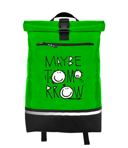 Original backpack ROLL-TOP LARGE with design 1001 MAYBE TOMORROW in color BRIGHT GREEN