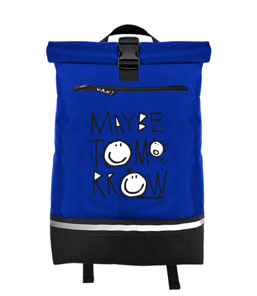 Original backpack ROLL-TOP LARGE with design 1001 MAYBE TOMORROW in color CLASSIC BLUE