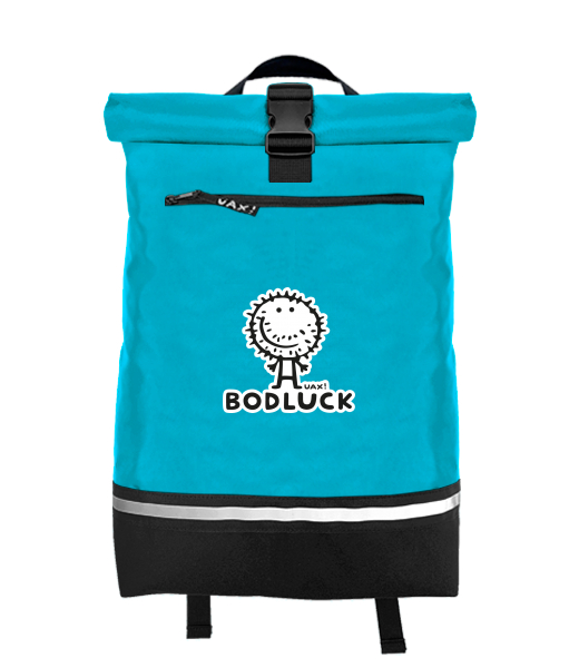 Original backpack ROLL-TOP LARGE with design 1002 BODLUCK in color BLUE ATOLL