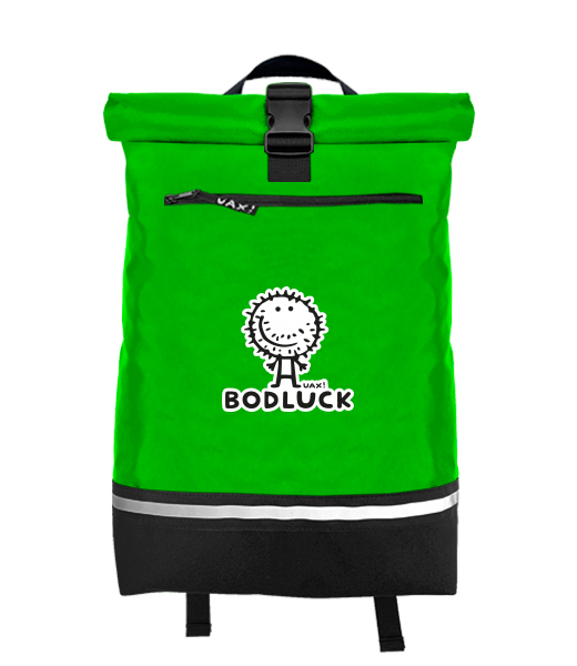 Original backpack ROLL-TOP LARGE with design 1002 BODLUCK in color BRIGHT GREEN