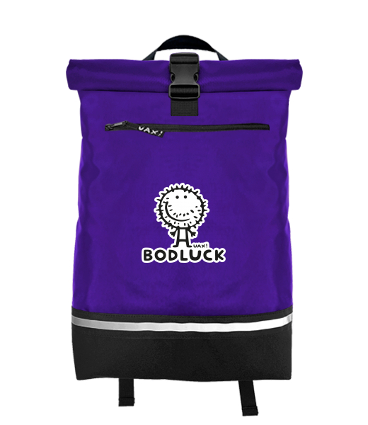 Original backpack ROLL-TOP LARGE with design 1002 BODLUCK in color VIOLET
