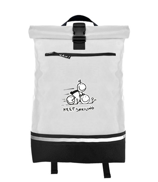 Original backpack ROLL-TOP LARGE with design 1017 KEEP SNAILING in color WHITE