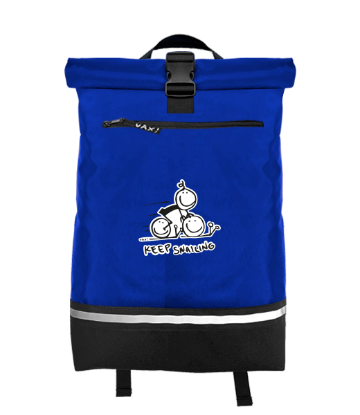 Original backpack ROLL-TOP LARGE. The upper part of the backpack can be closed with Velcro. It can be rolled up and switched on with a clip. For wearing, there is an ear and adjustable straps with safety reflective elements. The roll-top backpack has an outer pocket that can be closed with a zipper and an inside pocket that is not closable. A safety reflective tape is placed on the front of the roll-top large backpack. Mix & Match - Choose from many original prints and combine colorful colors. Color configurator! = mix your own color combination!