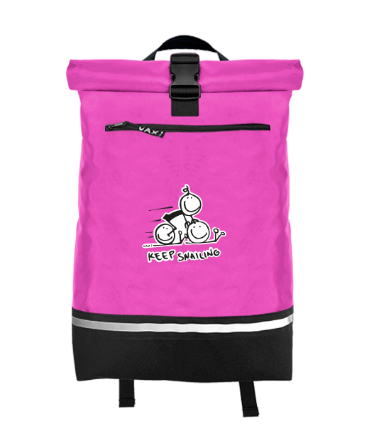 Original backpack ROLL-TOP LARGE. The upper part of the backpack can be closed with Velcro. It can be rolled up and switched on with a clip. For wearing, there is an ear and adjustable straps with safety reflective elements. The roll-top backpack has an outer pocket that can be closed with a zipper and an inside pocket that is not closable. A safety reflective tape is placed on the front of the roll-top large backpack. Mix & Match - Choose from many original prints and combine colorful colors. Color configurator! = mix your own color combination!