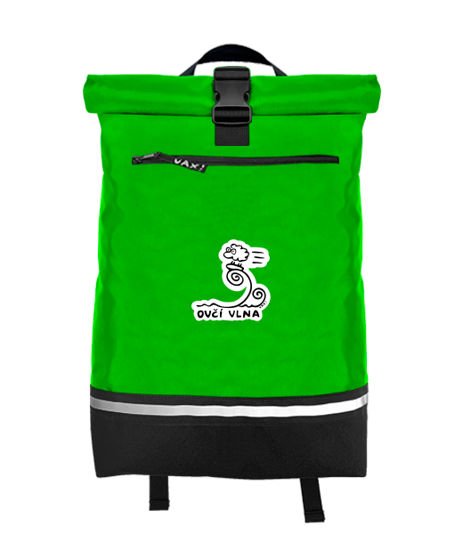 Original backpack ROLL-TOP LARGE with design 1036 OVČÍ VLNA in color BRIGHT GREEN