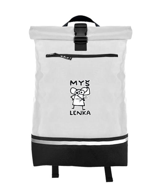 Original backpack ROLL-TOP LARGE with design 1038 MYŠ LENKA in color WHITE
