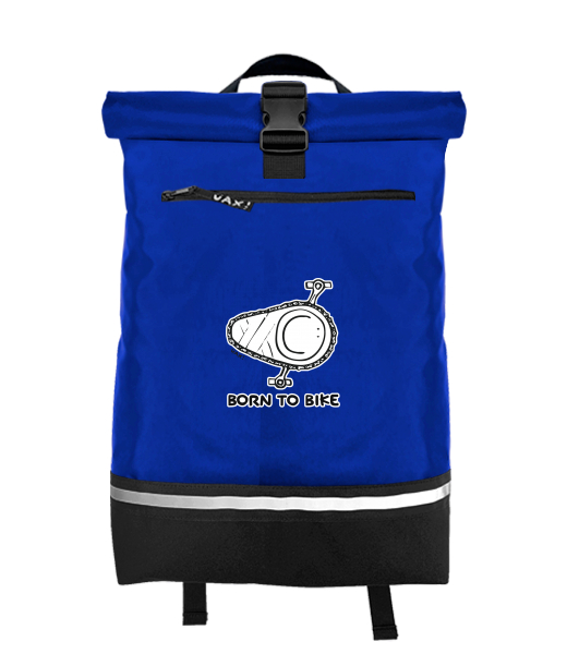 Original backpack ROLL-TOP LARGE with design 1074 BORN TO BIKE in color CLASSIC BLUE
