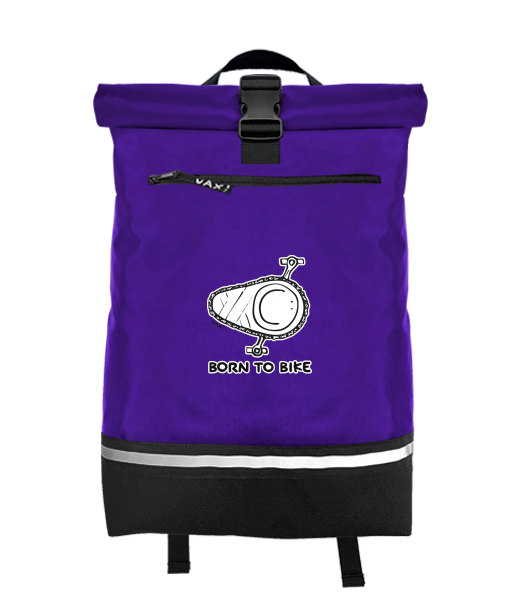 Original backpack ROLL-TOP LARGE with design 1074 BORN TO BIKE in color VIOLET
