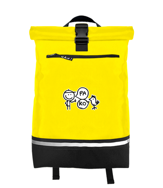 Original backpack ROLL-TOP LARGE. The upper part of the backpack can be closed with Velcro. It can be rolled up and switched on with a clip. For wearing, there is an ear and adjustable straps with safety reflective elements. The roll-top backpack has an outer pocket that can be closed with a zipper and an inside pocket that is not closable. A safety reflective tape is placed on the front of the roll-top large backpack. Mix & Match - Choose from many original prints and combine colorful colors. Color configurator! = mix your own color combination!