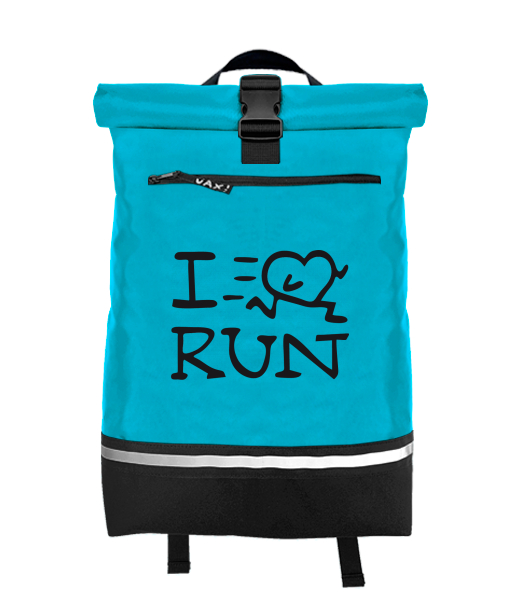 Original backpack ROLL-TOP LARGE with design 1088 I LOVE RUN in color BLUE ATOLL