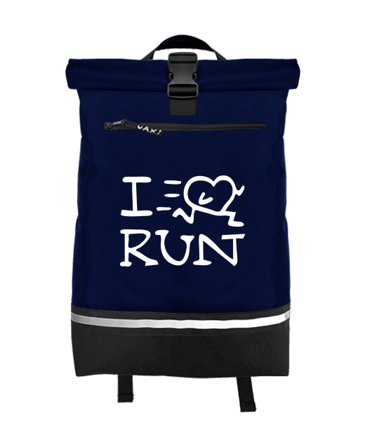 Original backpack ROLL-TOP LARGE with design 1088 I LOVE RUN in color MIDNIGHT BLUE