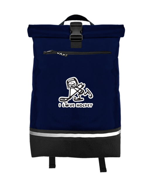 Original backpack ROLL-TOP LARGE with design 1100 I LOVE HOCKEY in color MIDNIGHT BLUE
