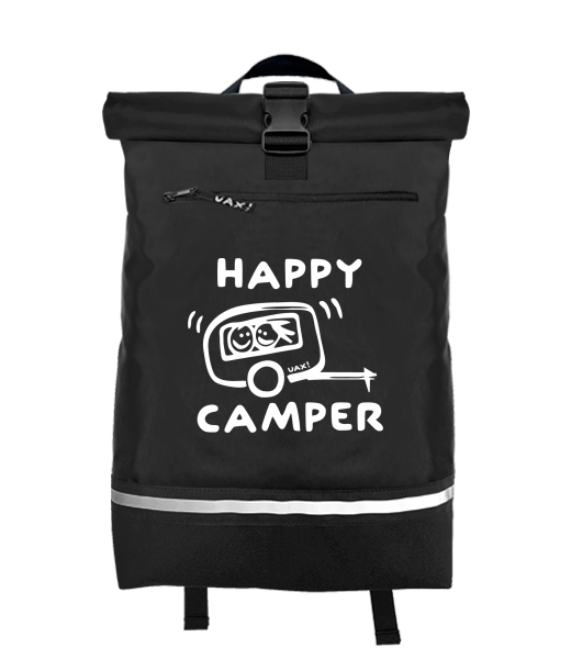 Original backpack ROLL-TOP LARGE with design 1116 HAPPY CAMPER in color BLACK