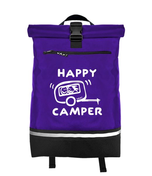 Original backpack ROLL-TOP LARGE with design 1116 HAPPY CAMPER in color VIOLET