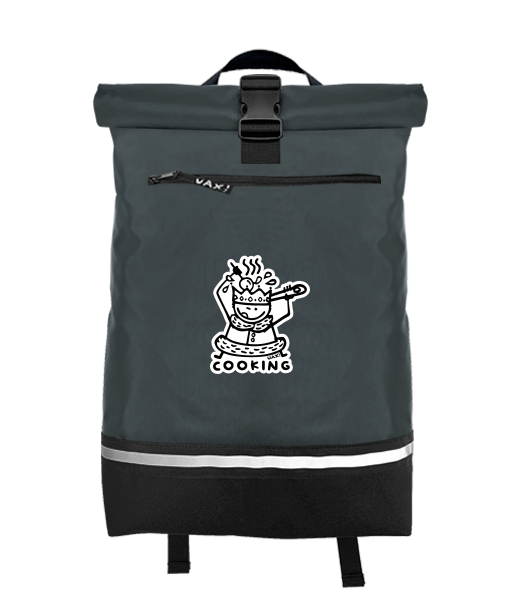 Original backpack ROLL-TOP LARGE with design 1117 COOKING in color GREY INK