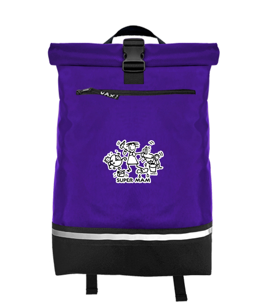 Original backpack ROLL-TOP LARGE with design 1126 SUPER MAM in color VIOLET