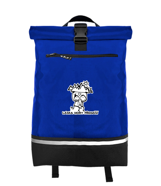 Original backpack ROLL-TOP LARGE with design 1128 LÁSKA HORY PŘENÁŠÍ in color CLASSIC BLUE