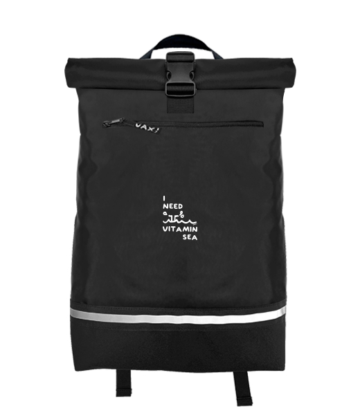 Original backpack ROLL-TOP LARGE with design 1132 I NEED VITAMIN SEA in color BLACK