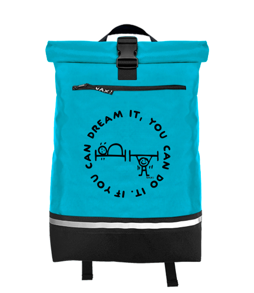 Original backpack ROLL-TOP LARGE with design 1133 IF YOU CAN DREAM IT in color BLUE ATOLL