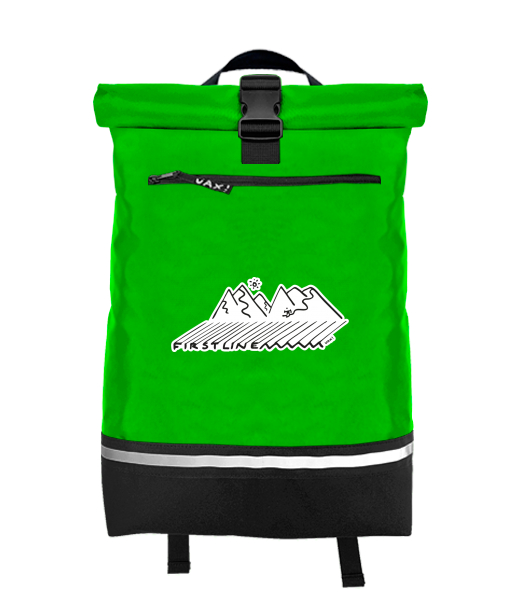 Original backpack ROLL-TOP LARGE with design 1181 FIRST LINE in color BRIGHT GREEN
