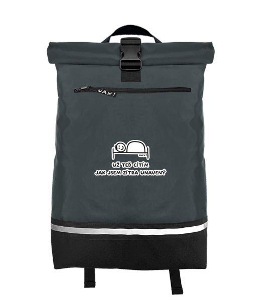 Original backpack ROLL-TOP LARGE with design 1200 UŽ TEĎ CÍTÍM JAK JSEM ZÍTRA UNAVENÝ in color GREY INK