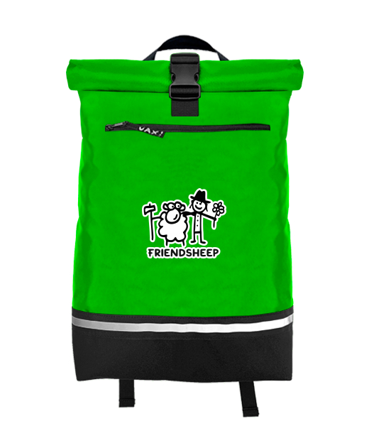Original backpack ROLL-TOP LARGE with design 1205 FRIENDSHEEP in color BRIGHT GREEN