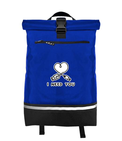 Original backpack ROLL-TOP LARGE with design 1206 I NEED YOU 2 in color CLASSIC BLUE