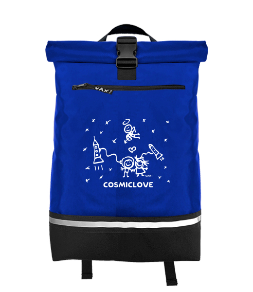 Original backpack ROLL-TOP LARGE with design 1207 COSMICLOVE in color CLASSIC BLUE