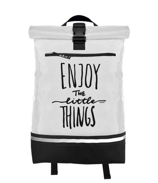 Original backpack ROLL-TOP LARGE with design 1222 ENJOY THE LITTLE THINGS in color WHITE