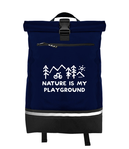 Original backpack ROLL-TOP LARGE with design 1223 NATURE IS MY PLAYGROUND in color MIDNIGHT BLUE