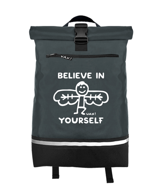 We make sustainable UAX clothing! - hand sewn in the Czech Republic uaxAccessories uaxAll productsPouches and backpacksBACKPACK ROLL-TOP LARGEdesign 1228 - BELIEVE IN YOURSELFGREY INK
