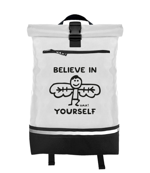 We make sustainable UAX clothing! - hand sewn in the Czech Republic uaxAccessories uaxAll productsPouches and backpacksBACKPACK ROLL-TOP LARGEdesign 1228 - BELIEVE IN YOURSELFWHITE