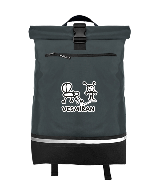 Original backpack ROLL-TOP LARGE with design 1232 VESMÍŘAN in color GREY INK