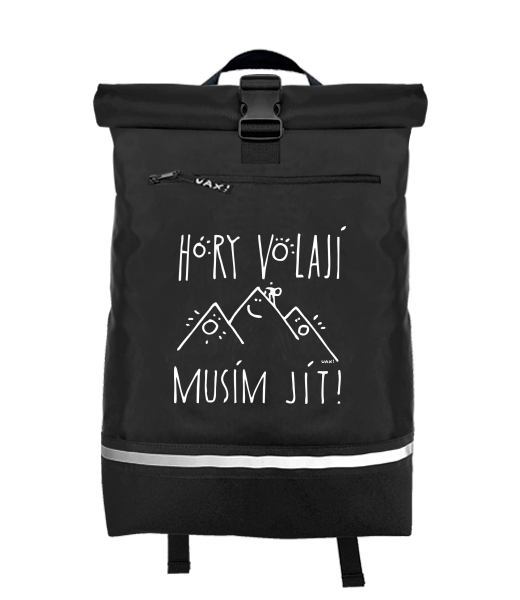 Original backpack ROLL-TOP LARGE with design 1233 HORY VOLAJÍ MUSÍM JÍT in color BLACK