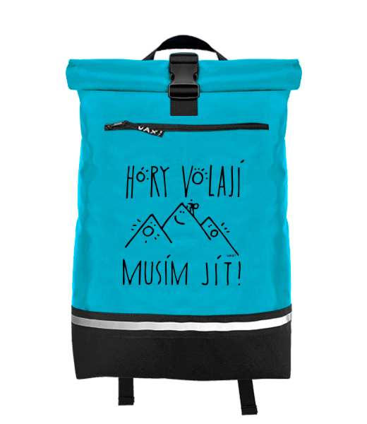 Original backpack ROLL-TOP LARGE with design 1233 HORY VOLAJÍ MUSÍM JÍT in color BLUE ATOLL