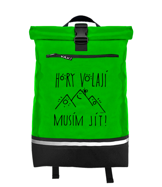 Original backpack ROLL-TOP LARGE with design 1233 HORY VOLAJÍ MUSÍM JÍT in color BRIGHT GREEN